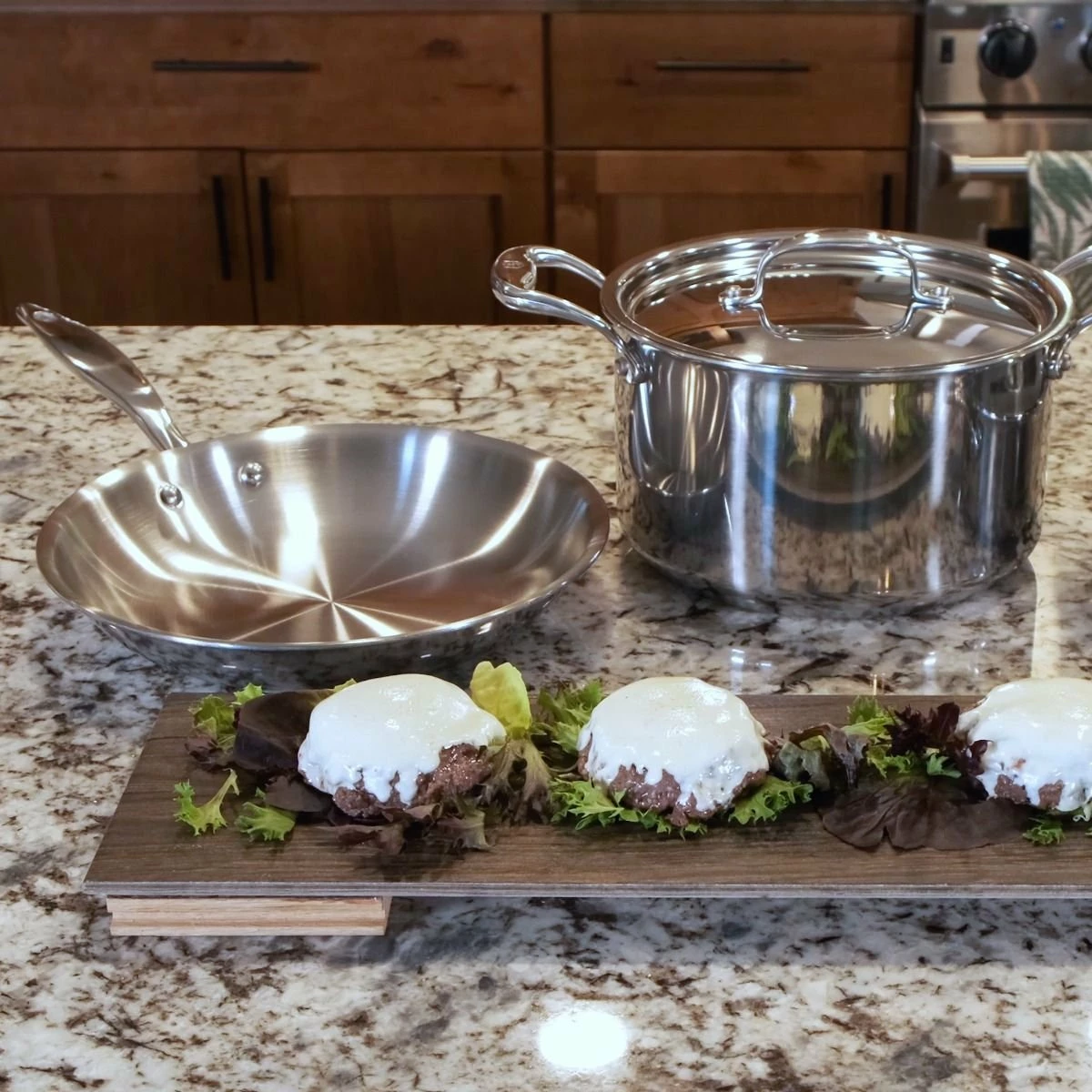 When you start to build your cookware collection, why not start with the best? The Hammer Stahl Heritage Steel 5-Piece Essential Cookware Set is the most wanted cookware set of the season. The Heritage Steel Essential Set is an Everything Kitchens Exclusive that consists of a 10.5″ Fry Pan, 4-Quart Saute Pan with lid, and the 5-Quart Sauce Pot with lid. This versatile collection of cookware is made of Heritage Steel which is less reactive than regular stainless steel and designed to help bring out the natural flavors of your food. Made in the USA using only the best materials, Hammer Stahl cookware is a staple of countless kitchens across our country. Give an amazing gift at a great value with the Hammer Stahl Essential Cookware Set. This Everything Kitchens exclusive isn’t available anywhere else, so get yours today!