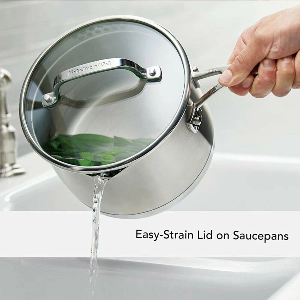 KitchenAid Stainless Steel 3-Ply Base 11-Piece Cookware Set Features: