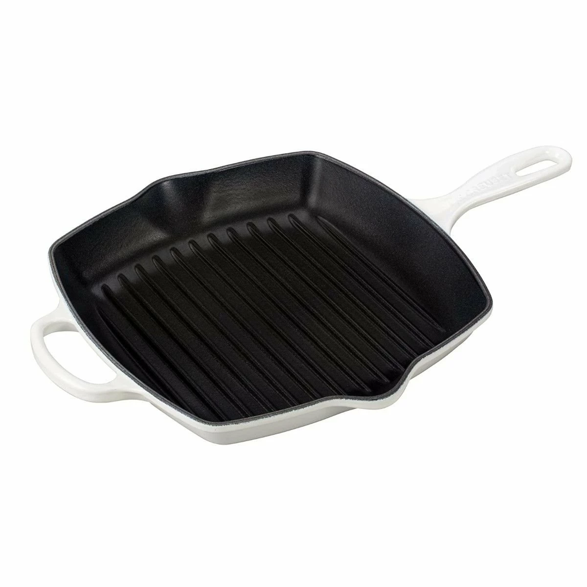 - 10.25″ Square Signature Skillet Grill: Sear, brown, and fry anything from juicy steaks and flavorful fajitas to burgers and pancakes with the 10.25″ Square Signature Skillet. Enamel coating on the inside of this skillet develops a natural patina over time which enhances the pan’s ability to sear & fry foods. This also means there is no need to season the cast iron. The ribbed cooking surface helps drain away excess fat while the large handle and a convenient helper handle on the opposite side assist when carrying between the oven, stovetop, and table.