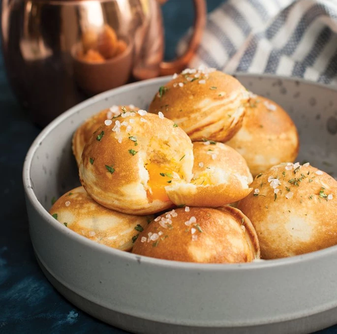 Take a twist the traditional pancakes or waffles with this Danish Ebleskiver pan from Nordic Ware. The Danish pancake pan makes traditional stuffed breakfast puffs that allow you to use your choice of fruits, meats, cheeses, or even chocolates, which give you a more interesting and tasty breakfast choice. Serve the Danish pancakes with flavored syrups, more fruit, or simply dust with confectioner’s sugar to give your family and friends a beautiful, tasty plate in the morning.