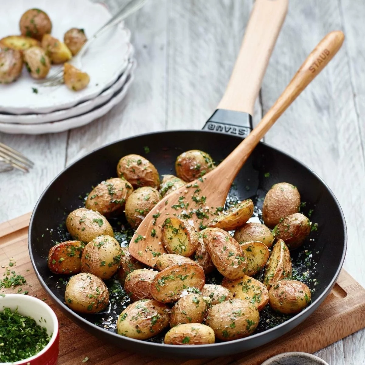 Staub 11″ Matte Black Fry Pan Wooden Handle Features: